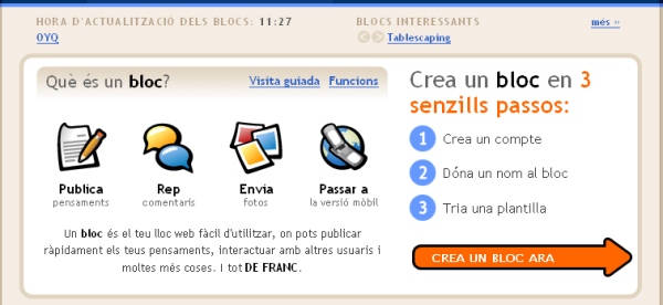 Entre els serveis d'e-Catalunya hi ha el de creació i gestió de blocs. Tanmateix, per fer una pràctica desimbolta us proposem que conegueu els serveis de Google als qual podeu accedir gratuïtament i senzilla. A més, constitueixen tot un paquet que integra elements que es reforcen els uns als altres accedint-hi amb un únic identificador.